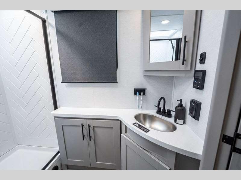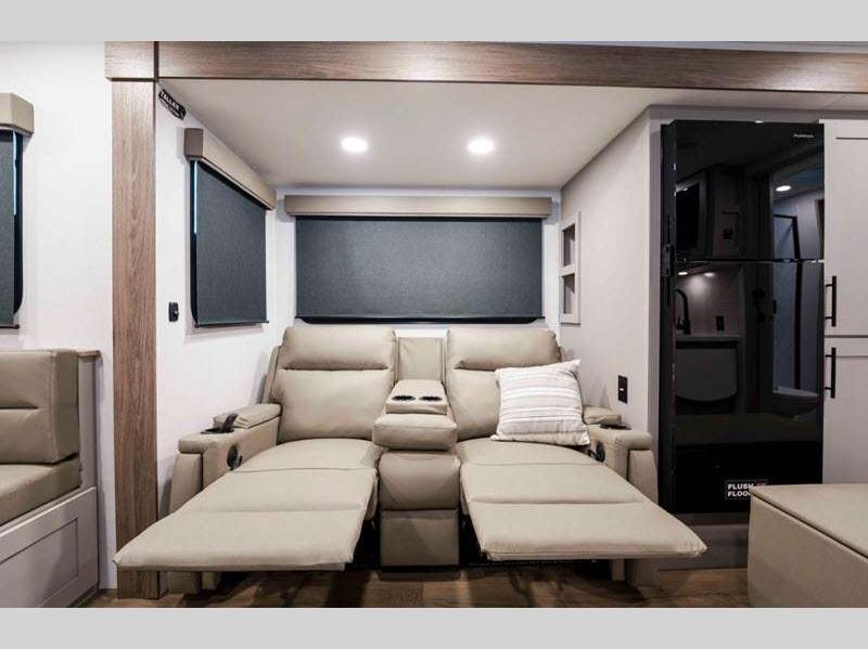 Sleeps 4 Slides 2 Length 33 ft 11 in Ext Width 0 ft Ext Height 11 ft 3 in Int Height 0 ft Hitch Weight 841 lbs GVWR 9250 lbs Dry Weight 7316 lbs Fresh Water Capacity 45 gals Grey Water Capacity 90 gals Black Water Capacity 45 gals Available Beds Queen Refrigerator Type 12V Refrigerator Size 10 cu ft Cooktop Burners 3 Shower Size 30" x 36" Number of Awnings 2 Cargo Deck Size 0 ft TV Info LR 50" TV Awning Info 12' and 14' Axle Count 2 Shower Type Standard Electrical Service 50 amp Solar Wattage 400 watts Similar Floorplans