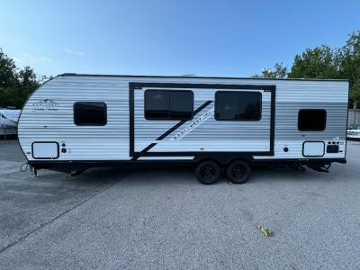 Sleeps 6 Length 21 ft Ext Width 8 ft Ext Height 10 ft 3 in Int Height 6 ft 9 in Hitch Weight 385 lbs Dry Weight 3513 lbs Cargo Capacity 1272 lbs Fresh Water Capacity 40 gals Grey Water Capacity 30 gals Black Water Capacity 30 gals Number Of Bunks 2 Available Beds Queen Refrigerator Type 12V Refrigerator Size 10 cu ft Cooktop Burners 2 Shower Size 24" x 40" Number of Awnings 1 Awning Info 12' Power w/LED Light Axle Count 1 Shower Type Walk-In Shower Similar Floorplans
