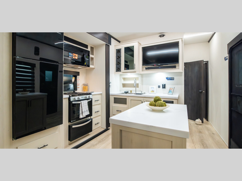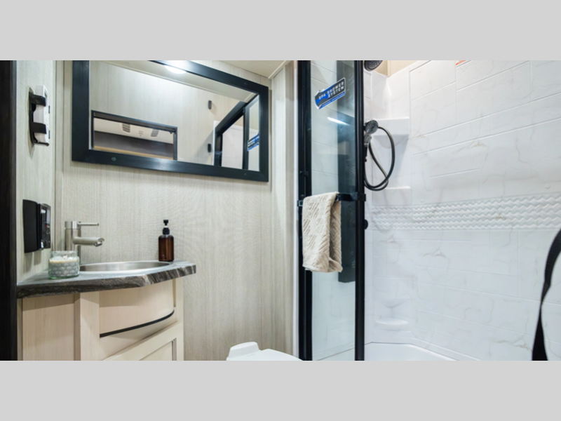 Sleeps 6 Slides 2 Length 34 ft Ext Width 8 ft 6 in Ext Height 12 ft 10 in Hitch Weight 1465 lbs GVWR 13465 lbs Dry Weight 8704 lbs Cargo Capacity 4761 lbs Fresh Water Capacity 102 gals Grey Water Capacity 50 gals Black Water Capacity 50 gals Tire Size 16" Furnace BTU 35000 btu Fuel Capacity 30 gals Number Of Bunks 1 Available Beds King Refrigerator Type 12V Black Glass Residential Style Refrigerator Size 10.7 cu ft Cooktop Burners 3 Number of Awnings 1 Axle Weight 6000 lbs Water Heater Type On Demand Tankless AC BTU 15000 btu TV Info LR LED Flatscreen Awning Info Power w/LED Lights Axle Count 2 Shower Type Standard Electrical Service 50 amp Solar Wattage 200 watts Similar Floorplans