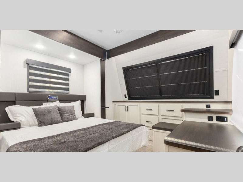 Sleeps 7 Slides 2 Length 39 ft 11 in Ext Width 8 ft 6 in Ext Height 12 ft 10 in Hitch Weight 1620 lbs GVWR 13620 lbs Dry Weight 10219 lbs Cargo Capacity 3401 lbs Fresh Water Capacity 102 gals Grey Water Capacity 100 gals Black Water Capacity 100 gals Tire Size 16" Furnace BTU 35000 btu Fuel Capacity 30 gals Number Of Bunks 1 Available Beds King Refrigerator Type 12V Black Glass Residential Style Refrigerator Size 10.7 cu ft Cooktop Burners 3 Number of Awnings 1 Axle Weight 6000 lbs Water Heater Type On Demand Tankless AC BTU 15000 btu TV Info LR LED Flatscreen Awning Info 18' Power w/LED Lights Axle Count 2 Shower Type Standard Electrical Service 50 amp Solar Wattage 200 watts Similar Floorplans