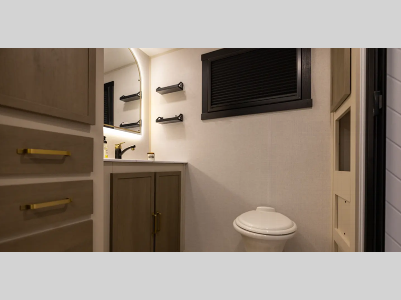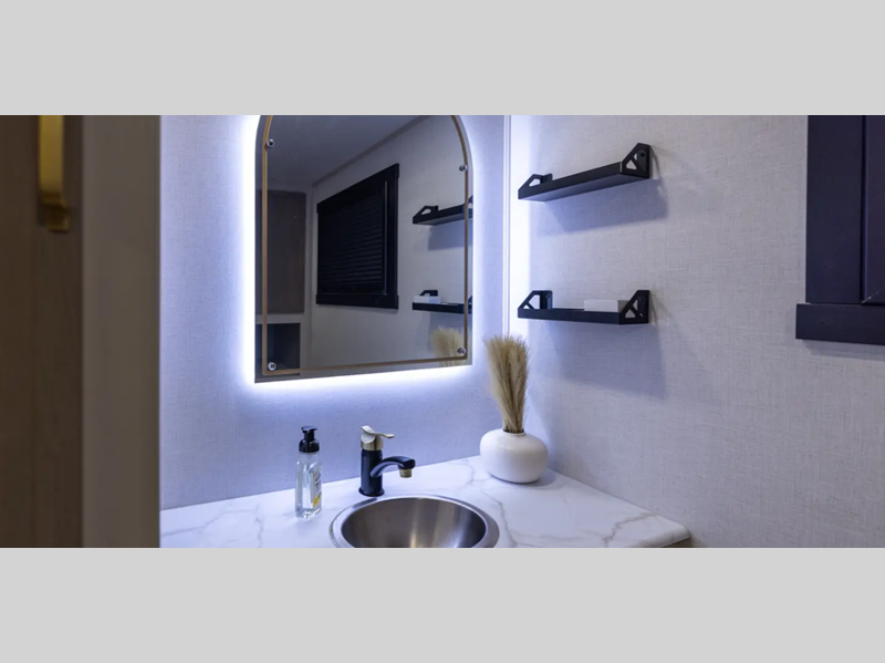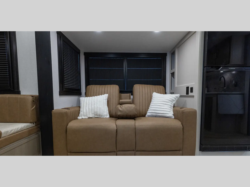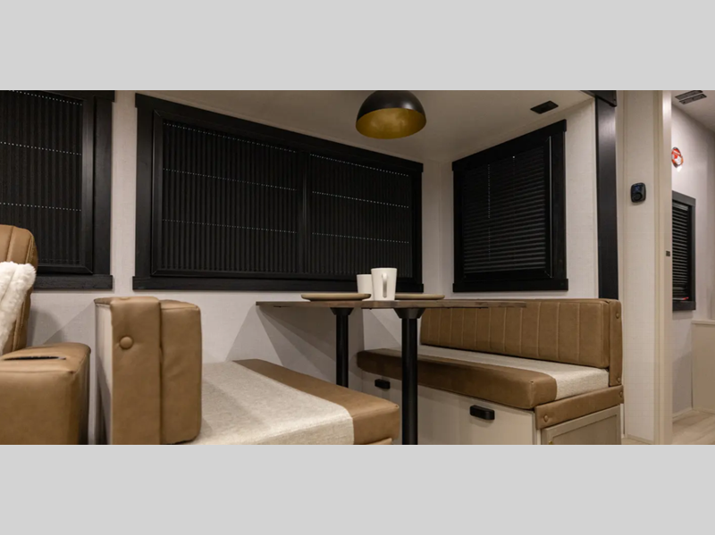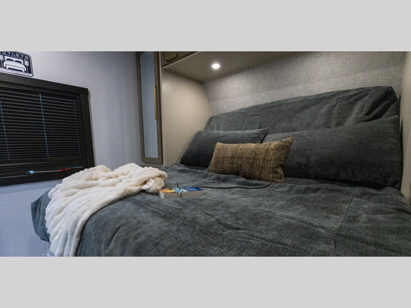 Each model is built with laminated "Aluma Frame" sidewalls and floor with block foam insulation for added durability. There is a power tongue jack with an LED docking light, along with an outside shower, and an extra large pass-thru storage for camp gear. You'll also enjoy the included Elevated Value Package that features conveniences such as square windows with built-in shades, 60K BTU On-Demand tankless water heater, and Maxxis radial tires.