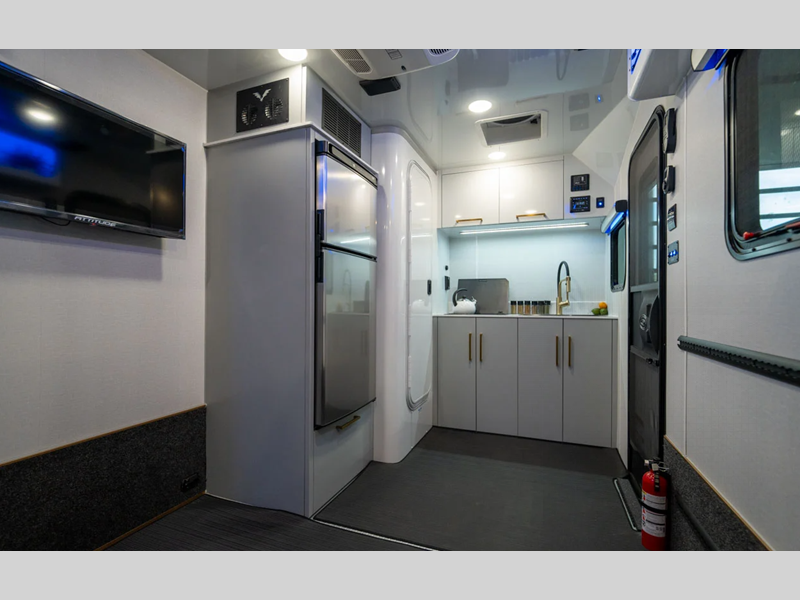 You'll find ample storage space inside and out for your personal belongings and riding gear, along with tie-down rings to keep your toys secure. The on-demand water heater will provide endless hot showers, and the optional Off-Grid Package can be added if you plan to go off the beaten path. Outside, you'll appreciate the power tongue jack, exterior lighting, and fold-away double entry step.