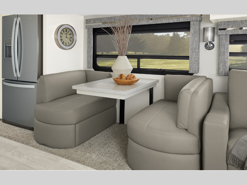 All floorplans are available on the durable Freightliner chassis or the optional Spartan chassis, and with each model you'll appreciate the STAR Foundation for maximum strength, durability, and a more stable ride. The industry-first Comfort Drive adaptive steering system will make the drive easier than ever, along with six-way power captain's seats. Tile flooring, polished solid surface countertops, and decorative wall art are just a few luxuries you'll enjoy with the Ventana, and there are many exterior amenities to make life on the road hassle-free. There is ample storage space for all your gear, a Girard G2000 power side awning, an 8.0 kW Cummins Onan diesel quiet generator, and so much more!