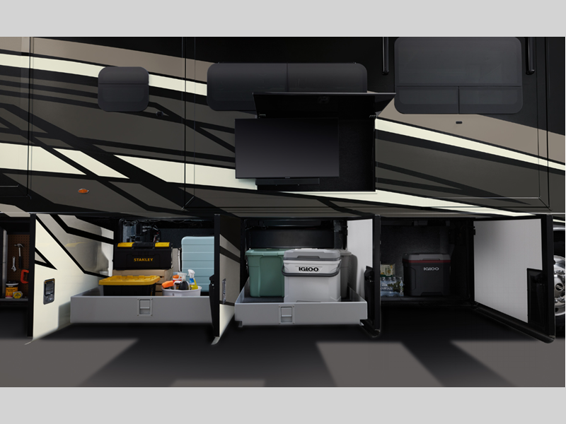 - TV Jack and 110-Volt Recept in Door Side Exterior Storage Compartment