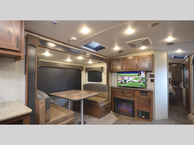 Sleeps 5 Slides 2 Length 32 ft 4 in Ext Width 8 ft Ext Height 11 ft 7 in Int Height 6 ft 11 in Interior Color High Desert, Western Sunrise Hitch Weight 825 lbs GVWR 11000 lbs Dry Weight 7800 lbs Cargo Capacity 3200 lbs Fresh Water Capacity 80 gals Grey Water Capacity 80 gals Black Water Capacity 50 gals Tire Size ST235/80/16E Furnace BTU 35000 btu Available Beds Queen Refrigerator Type 12V Off Grid Refrigerator Size 10 cu ft Cooktop Burners 3 Number of Awnings 1 Axle Weight 5200 lbs LP Tank Capacity 30 lbs Water Heater Capacity 10 gal TV Info LR 40" TV Awning Info 20' Axle Count 2 Number of LP Tanks 2 Shower Type Neo-Angled Similar Floorplans