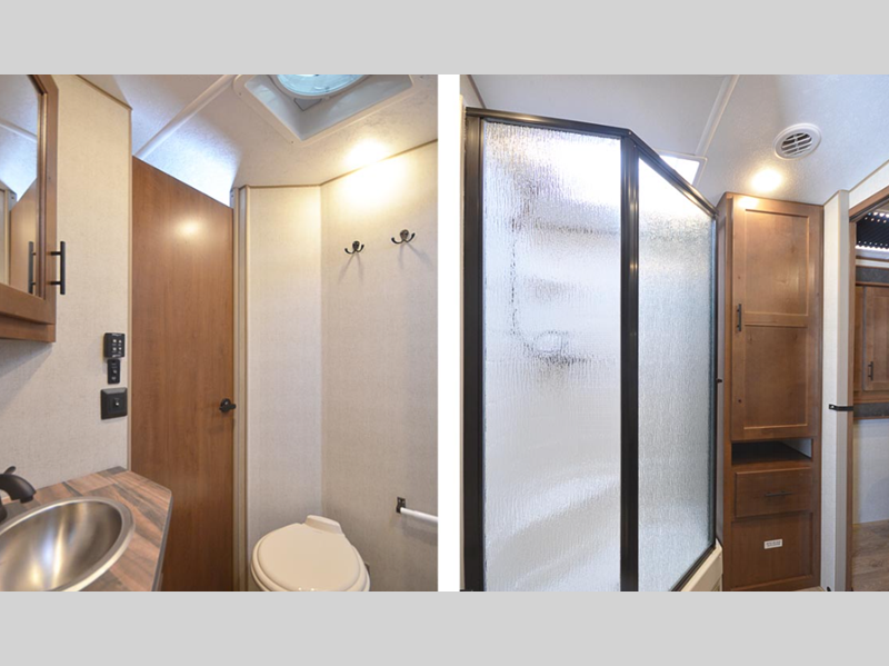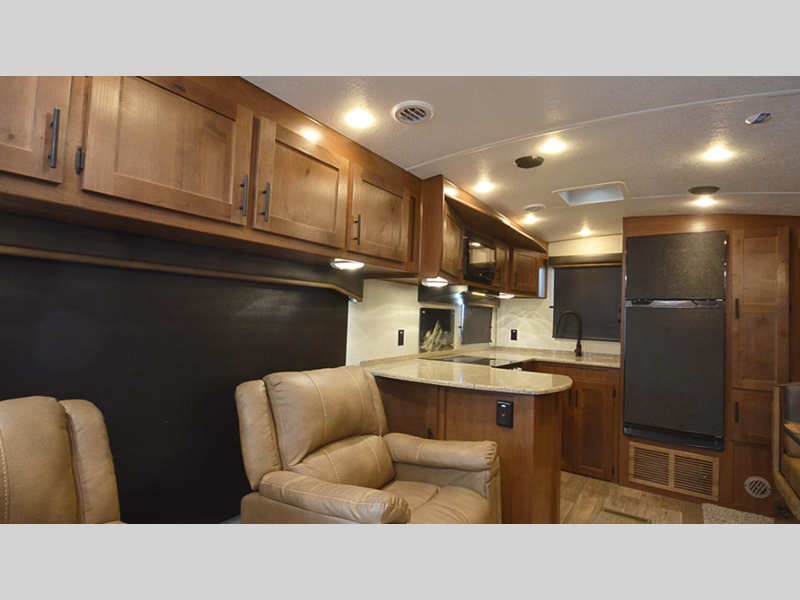 Sleeps 3 Slides 2 Length 33 ft 8 in Ext Width 8 ft Ext Height 11 ft 7 in Int Height 6 ft 11 in Interior Color High Desert, Western Sunrise GVWR 11000 lbs Dry Weight 2810 lbs Fresh Water Capacity 82 gals Grey Water Capacity 50 gals Black Water Capacity 50 gals Tire Size ST235/80/16E Furnace BTU 35000 btu Available Beds Queen Refrigerator Type 12V Off Grid Refrigerator Size 10 cu ft Cooktop Burners 3 Number of Awnings 1 Axle Weight 5200 lbs LP Tank Capacity 30 lbs Water Heater Capacity 10 gal TV Info LR 32" Swing-Out TV Awning Info 21' Axle Count 2 Number of LP Tanks 2 Shower Type Standard Similar Floorplans