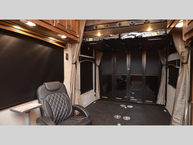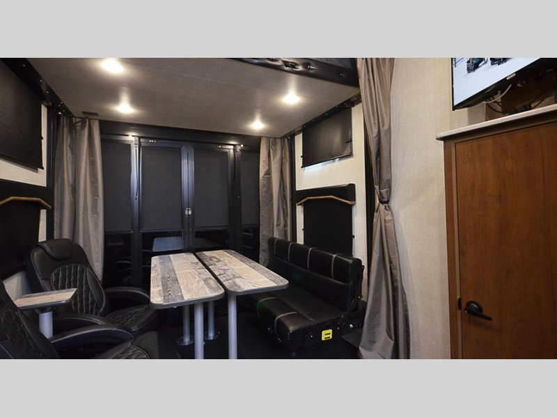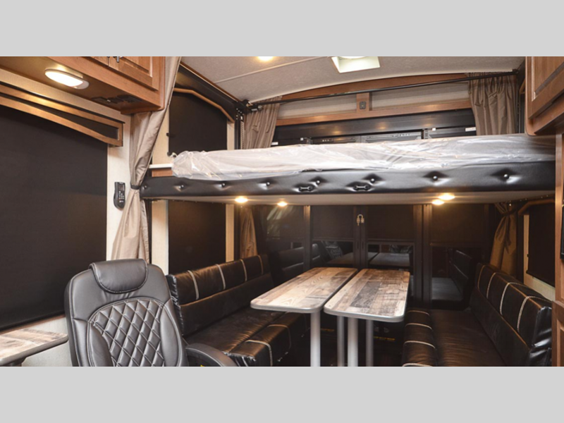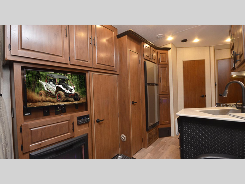 Start exploring the great outdoors with your favorite toys in these Outdoors RV Trail Series MTN TRX Titanium Series toy hauler travel trailers!