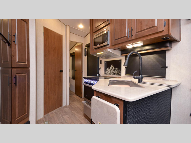 Each model features rear back up lights, a remote camping package, and a wireless rear, side(s) turn camera system for hassle-free parking. Inside, you'll find LG solid surface countertops, an upgraded high-rise kitchen faucet, a premium memory foam mattress, and many more comforts!