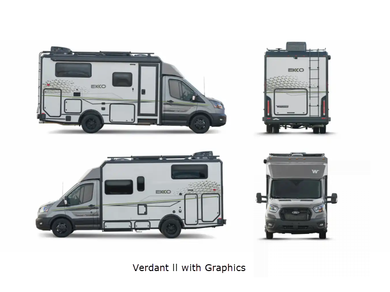 Sleeps 2 Length 23 ft Ext Width 7 ft 3 in Ext Height 10 ft 6 in Int Height 6 ft 8 in Interior Color Veredis, Juniper Exterior Color Raw Sienna ll, Raw Sienna ll with Graphics, Verdant ll, Verdant ll with Graphics Hitch Weight 5000 lbs GVWR 11000 lbs Fresh Water Capacity 50 gals Grey Water Capacity 51 gals Generator 2,800W Gas Fuel Type Gasoline Engine 3.5L EcoBoost V6 Chassis Ford AWD Transit Fuel Capacity 31 gals Wheelbase 156 in Available Beds Two Twin Refrigerator Type Single Door Compressor Driven 12V Refrigerator Size 5.3 cu ft Cooktop Burners 2 Shower Size 24" x 30" Number of Awnings 1 Axle Weight Front 4630 lbs Axle Weight Rear 7275 lbs LP Tank Capacity 40 lbs Water Heater Type Truma AquaGo Tankless Comfort Plus AC BTU 13500 btu Basement Storage 65.3 cu. ft. Awning Info 13' Power with LED Lighting and Bluetooth Control Gross Combined Weight 15000 lbs Shower Type Wet/Bath Shower Electrical Service 30 amp Similar Floorplans